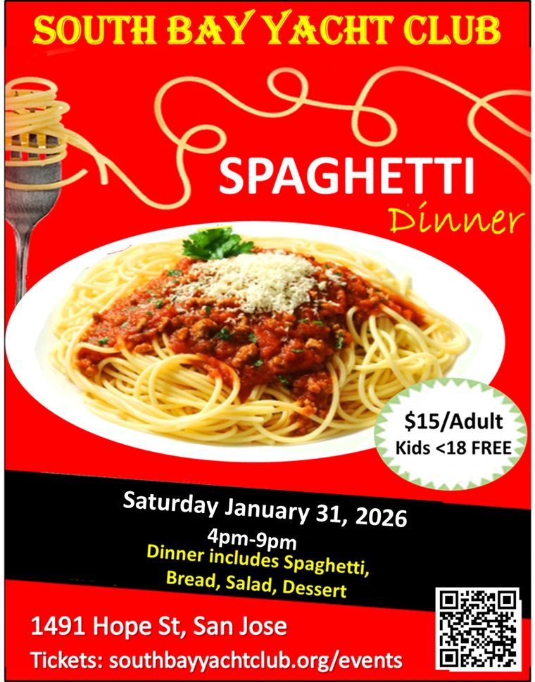Club Members, Sea Scouts and family and their invited guests, join us for a family-friendly Spaghetti Feed